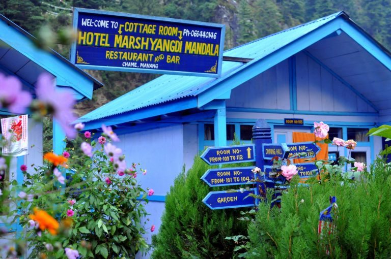 Chamje est situé sur la route principale. Ce village n’est pas dans les arrêts classique du tour des Annapurnas, mais j’y retrouve une trentaine de compagnons de trekking (c’est finalement assez peu).