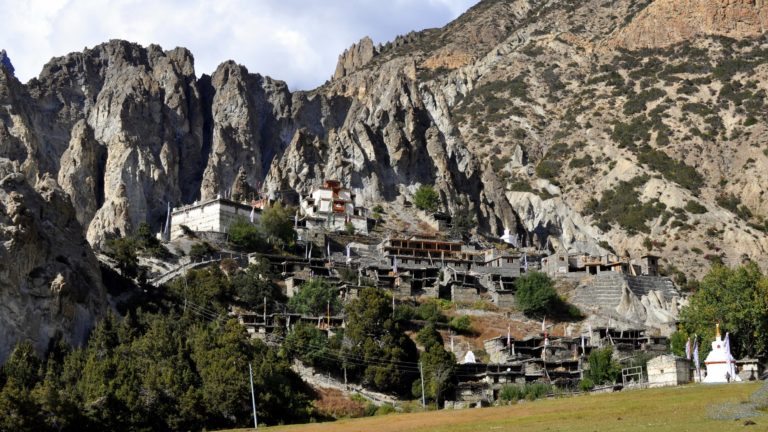 Nous franchissons l’altitude de 3000m au niveau de Dhukur Pokhari, puis nous arrivons à Pisang environ une heure plus tard. L’étape du tour nord des Annapurnas d’aujourd’hui était, là encore, plutôt courte et facile. Parfaite pour laisser son sac et visiter les environs.