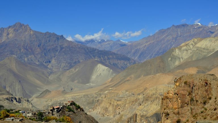 Je poursuite ma descente jusqu’au village de Jarkhot, un village fortifié de murs en terre. Je continue ensuite ma route jusqu’à Kagbeni, point d’entrée vers la vallée interdite du Haut Mustang.