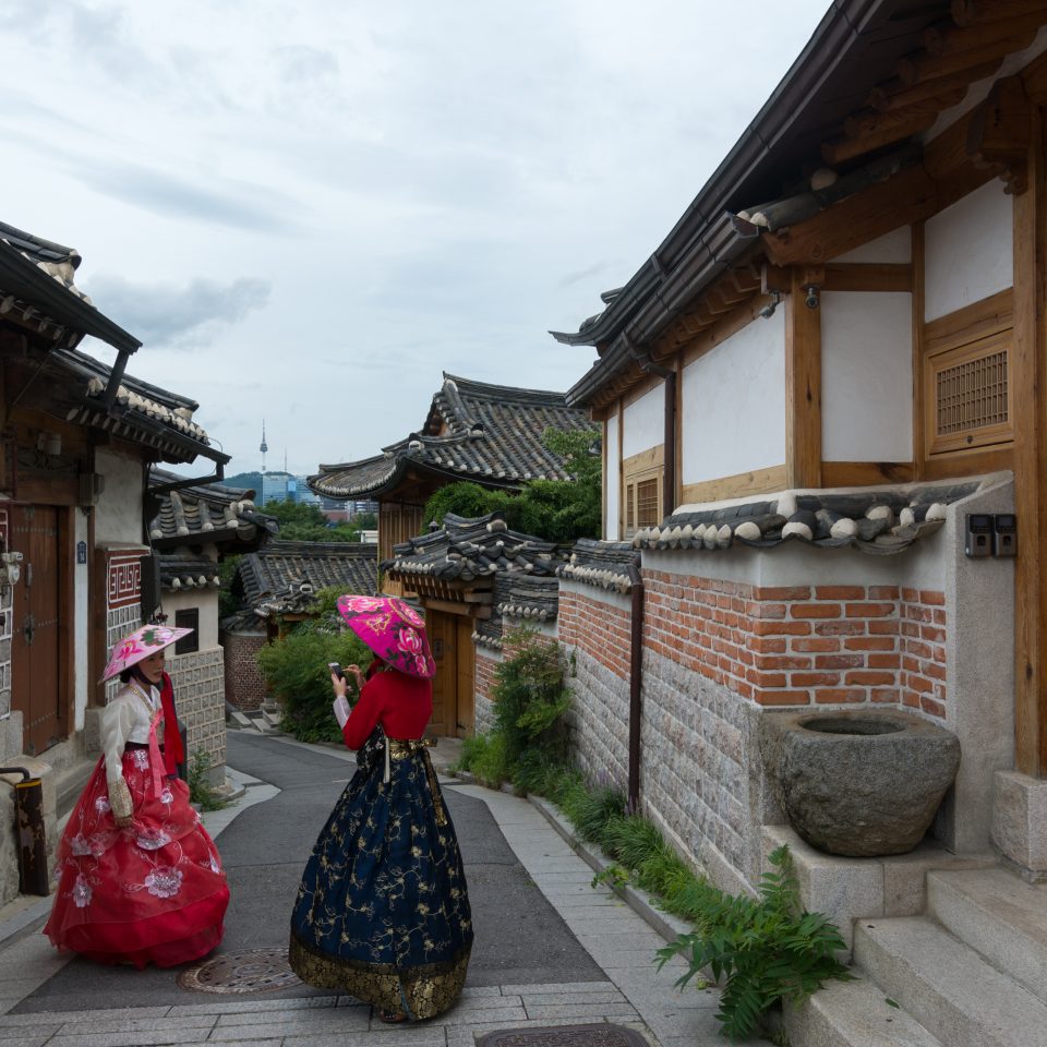 Séoul. Entre les gratte-ciels et les logements toujours plus hauts et plus modernes, les ruelles du quartier de Jongno-gu semblent surgir du passé. Témoin d’une Corée traditionnelle vivante et toujours présente dans le cœur de ses habitants, les petites échoppes se transforment petit à petit en cafés branchés, afin de faire revivre ce quartier autrefois délaissé. A quelques encablures, le village Hanok de Bukchon attire toujours plus de visiteurs. Le tourisme au dépend de l’authenticité, c’est parfois le prix à payer pour la sauvegarde d’un patrimoine…