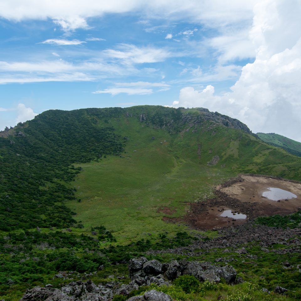 Le point culminant de l’île est un volcan bouclier, le Mont Halla (1950m), aujourd’hui éteint. On peut atteindre son sommet, un cratère avec un petit lac, par deux sentiers de randonnées, assez longs mais plutôt agréables. Les Coréens étant de vrai fan de randonnées, même en vacances, il ne faut pas s’attendre à suivre son petit sentier en solitaire, mais l’abondante végétation donne un caractère suffisamment sauvage pour être dépaysant.