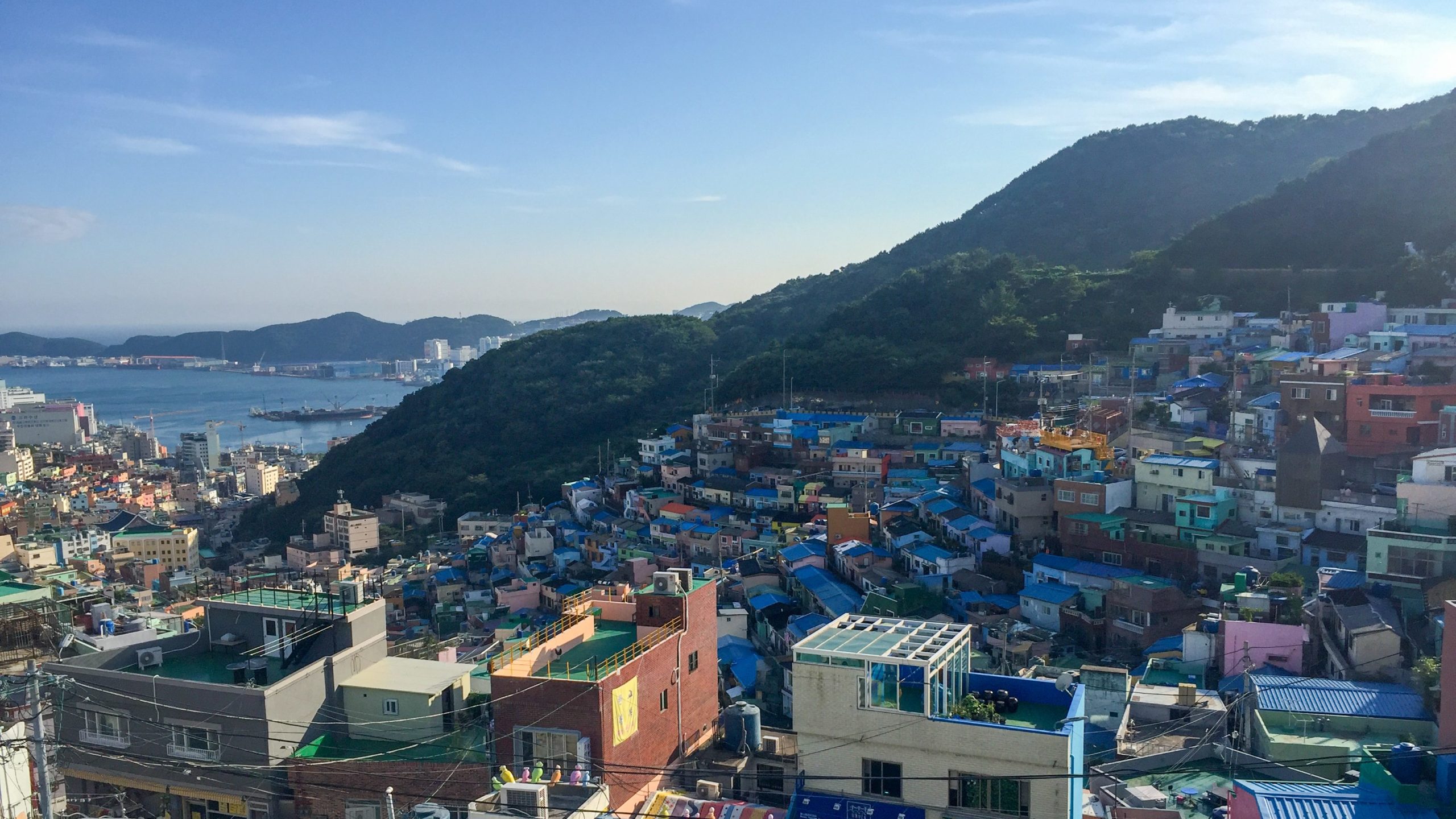 Juin 1950, l’offensive nord-coréenne balaye les forces du Sud et leurs appuis américains qui se réfugient autour de Busan. La déroute s’accompagne d’un exode. La ville voit alors sa population augmenter de 40 %. Elle est alors confrontée à des problèmes de salubrité et de pauvreté. En 1957, elle propose à 25 familles de réfugiés de s’installer à Gamcheon. La misère règne. L’électricité n’arrivera ici qu’en 1965 et l’eau courante dans les années 1970.