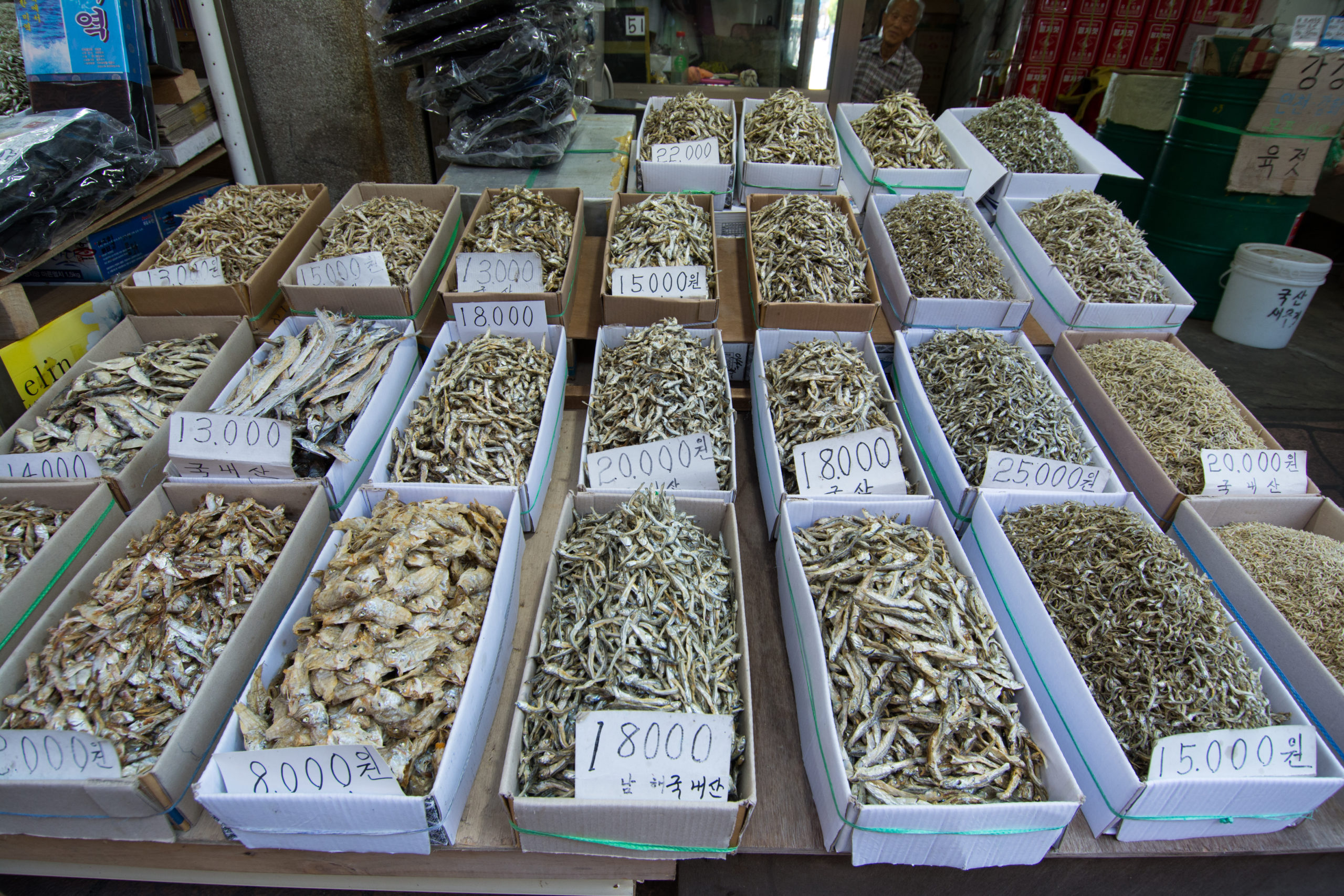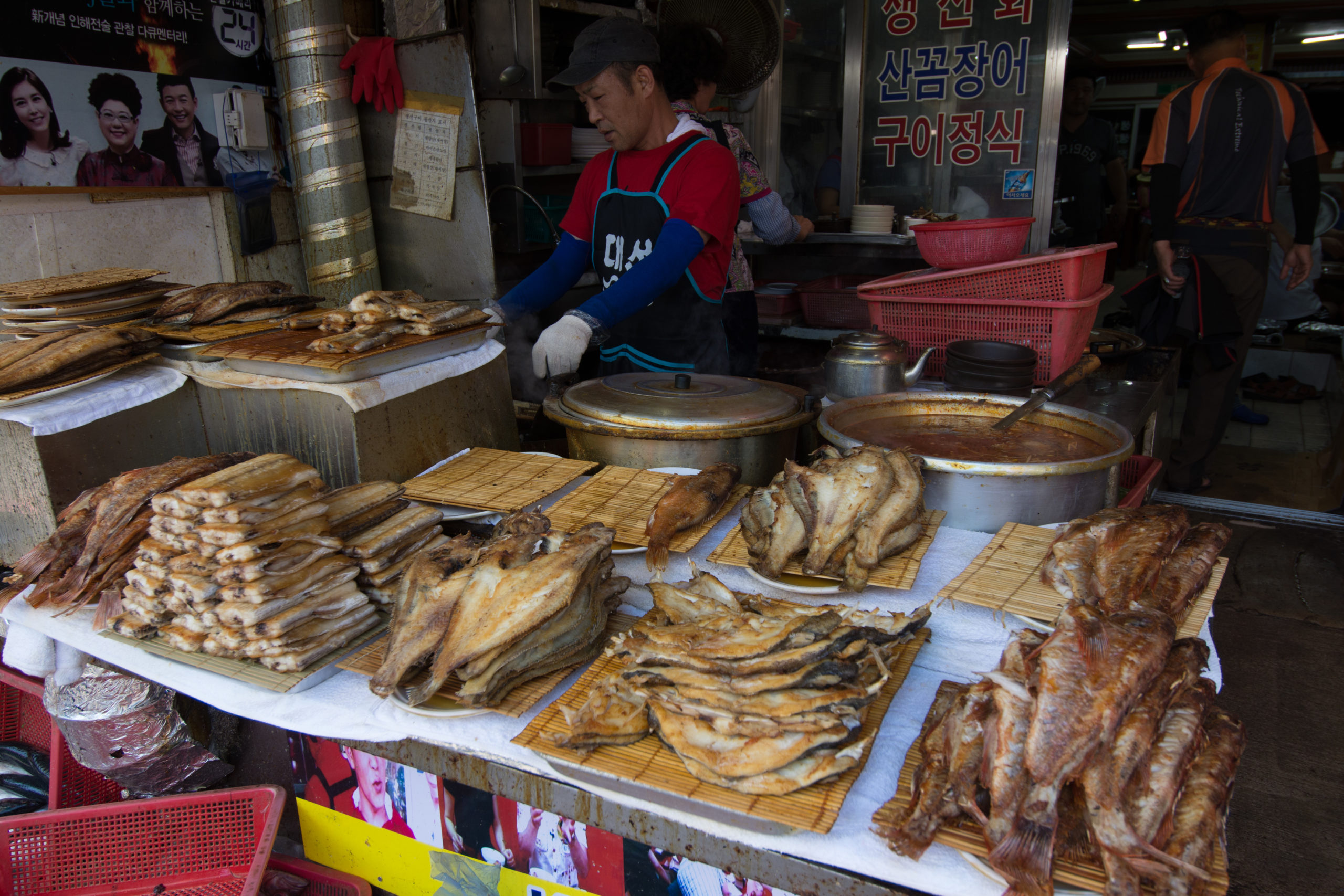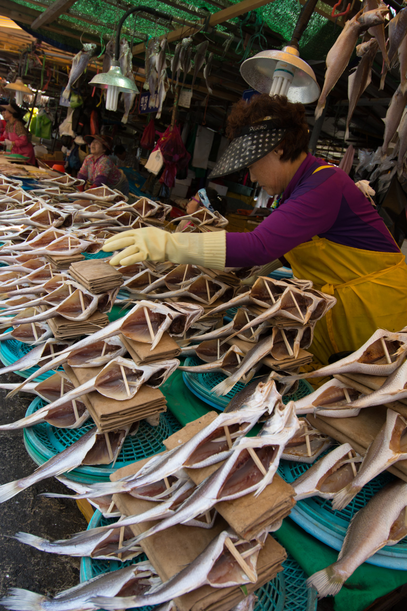 Au travers d’un dédale de petites allées, les étals proposent tous les produits de la mer et sous toutes leurs formes, en pâte ou en friture, séchés, frais ou crus. A l’ombre des petits stands crasseux, les petites marchandes aux yeux noirs nous regardent d’un air amusé, dans une légère fragrance d’ammoniaque et de poulpes séchés. Derrière une montagne de fritures, on trouve un sourire, un salon de coiffure improvisé ou un conseil culinaire.