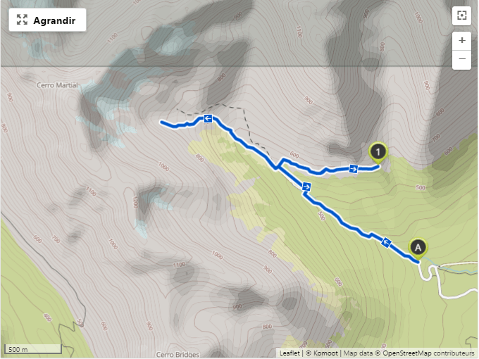 Le départ se fait soit depuis le chemin qui mène au glacier martial, soit depuis l’hotel Las Terrazas.