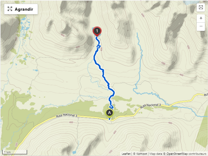 L’accès se fait par le sendero Esmeralda, sur la RN3.